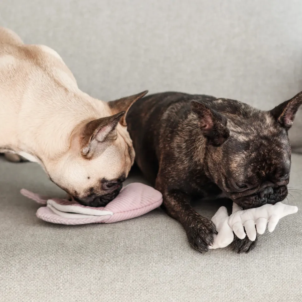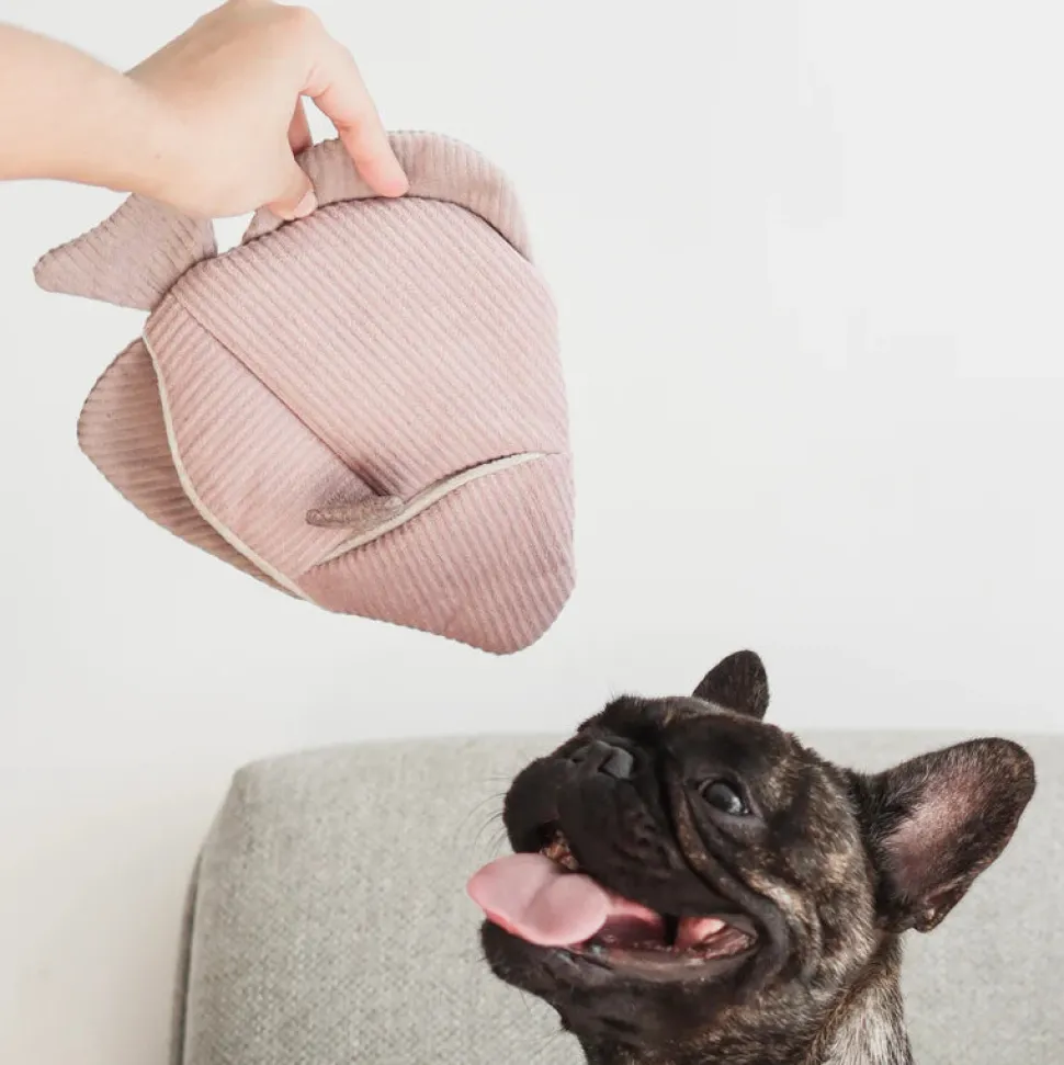 ANGEL FISH is a 2-in-1 burrow and snuffle enrichment play object. Inside the big fish is one large squeaky fishbone hidden in the belly for chewing, and all the fins crinkle! There are multiple pockets to hide treats in – 2 small and one large for nose work sessions.