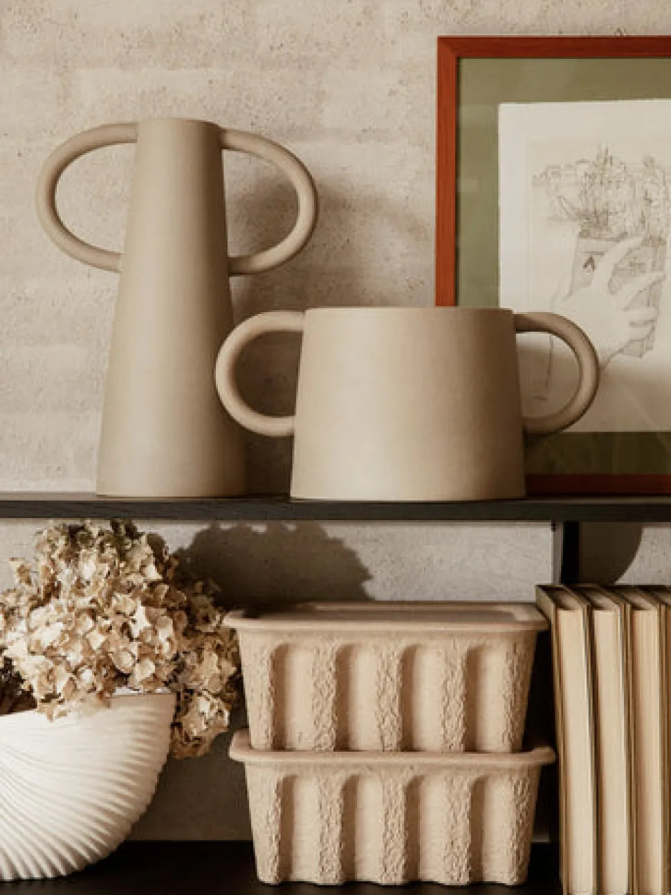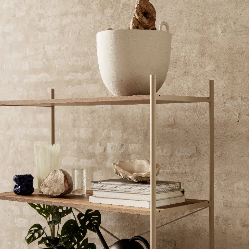 Past and present fuse together in the Anse Pot. Made from a special, rustic clay, the pot’s raw sand colour and rough texture is pleasantly contrasted by its clean, cylindrical shape. A set of hand-formed handles recalling traditional pottery completes the look.