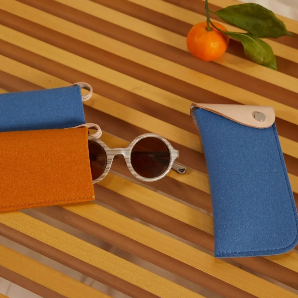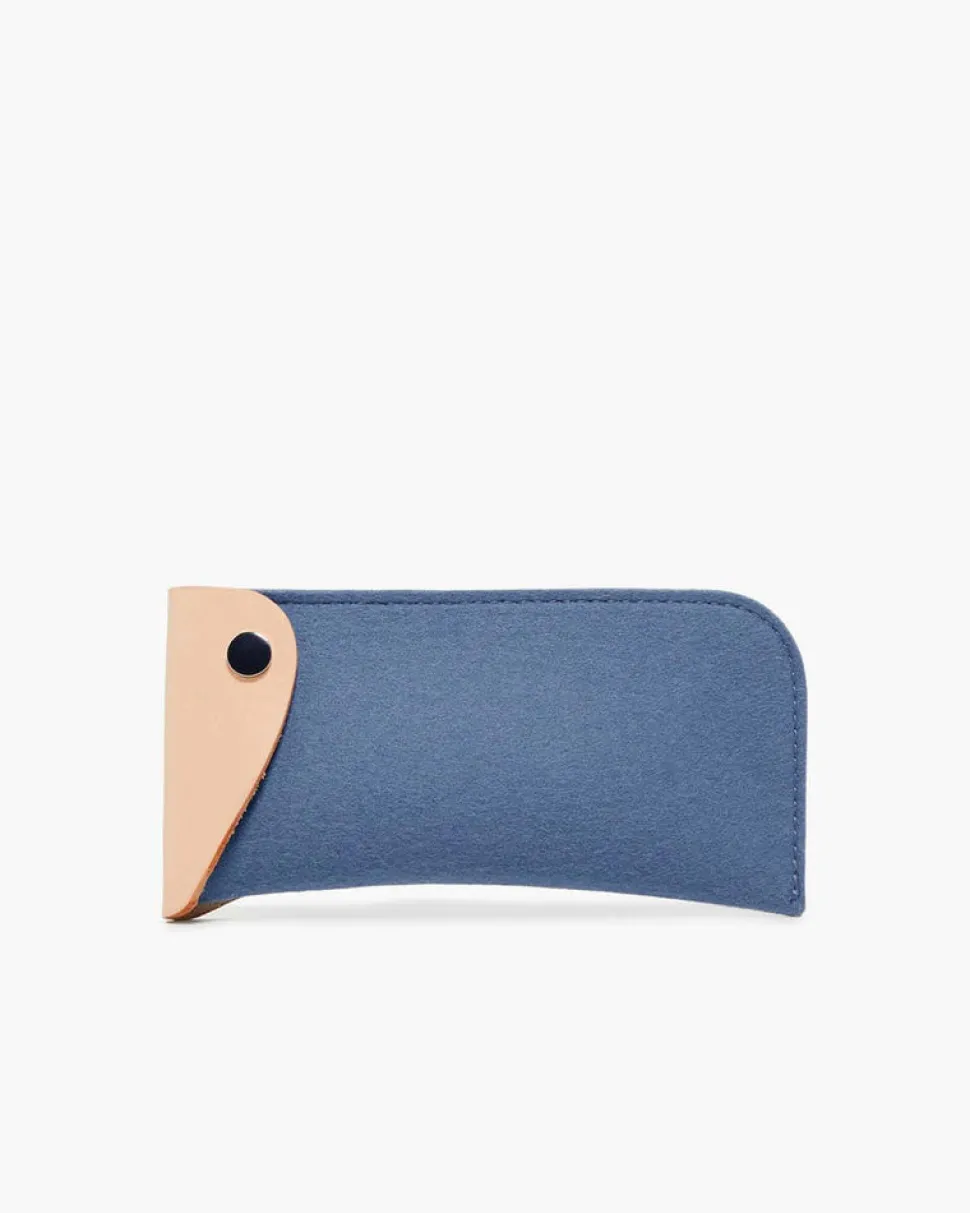 Keep your specs safe and sound in a merino wool felt eyeglass sleeve – now featuring a simple leather flap and single snap closure to make extra certain your glasses are there and scratch free when you need them most.