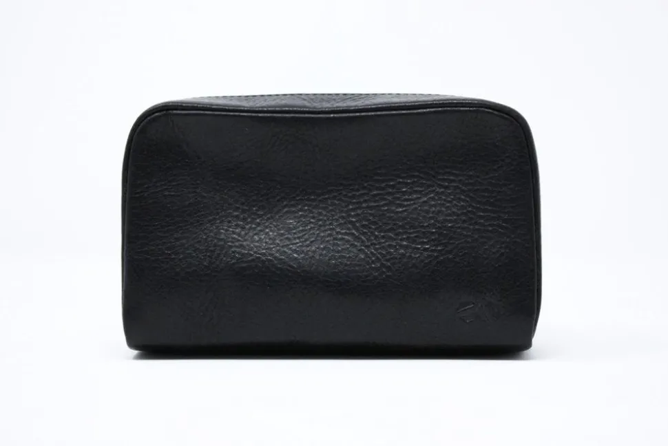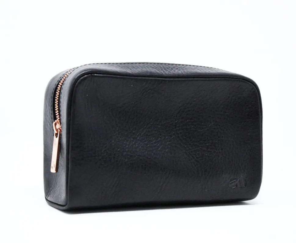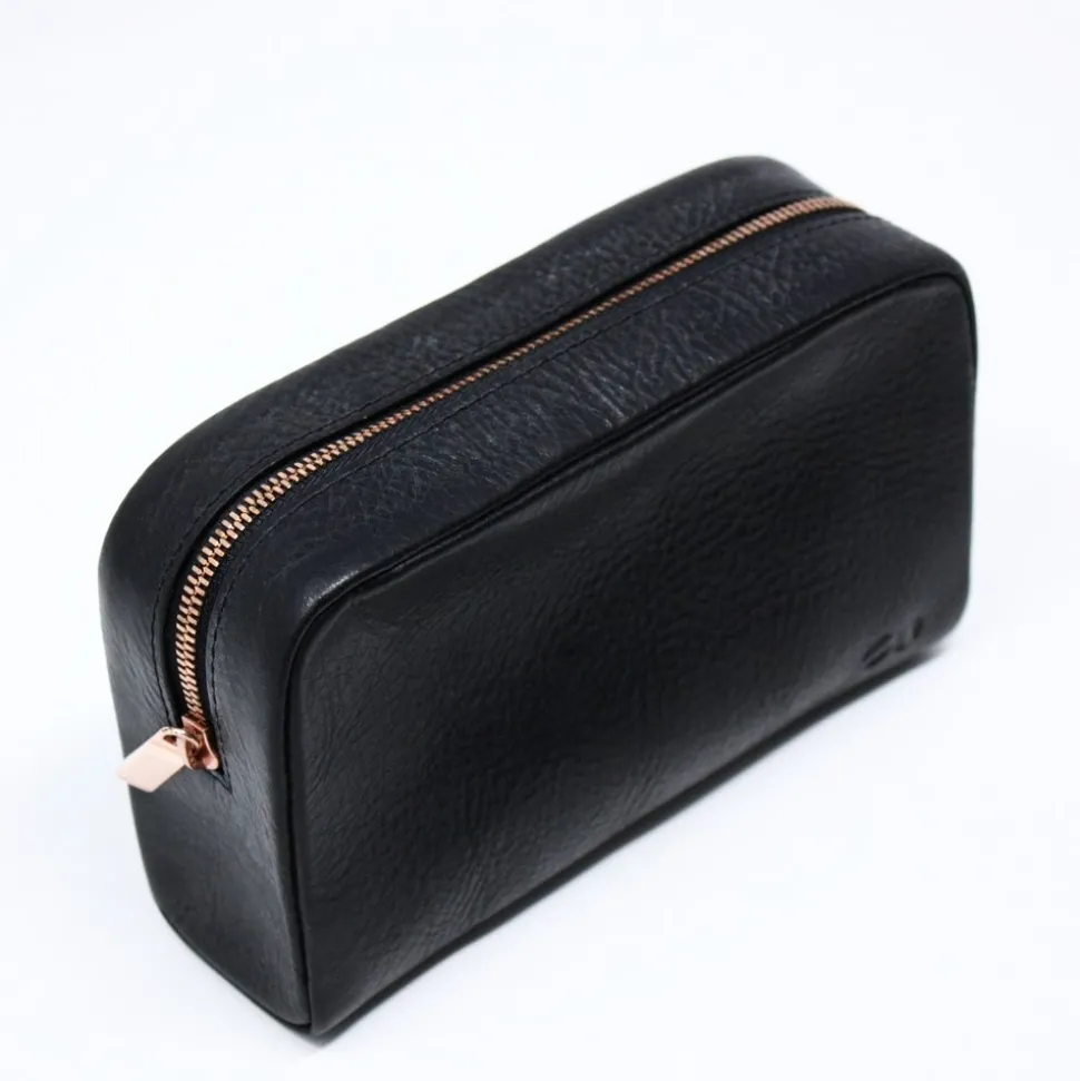 Minimalist case in tumbled Italian leather with contrast copper-colored zip. Holds all the small things that would be lost inside a larger bag, great for organizing tech peripherals or makeup.