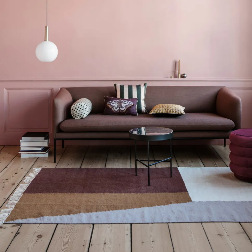 An area rug is a great way to define a space through colour and form to create a sense of coherence between the furniture and accessories in a room. In beautiful burnt hues, the Borders Kelim Rug redefines traditional kelim craftsmanship, combining it with Ferm Living’s strong sense for geometric shapes and colour blocking.