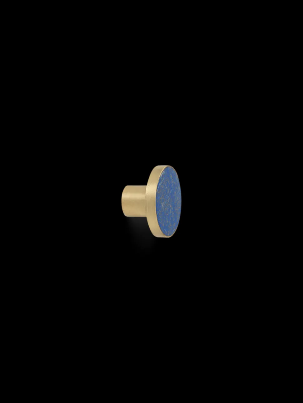 Hooks on the wall or knobs on cabinets and drawers are a subtle but important last finishing touch in a room. This large hook features blue lapis lazuli set in a brass mount, and may be used as either a hook for hanging or as a pull/knob for a drawer or a door. Includes hardware for both options.
