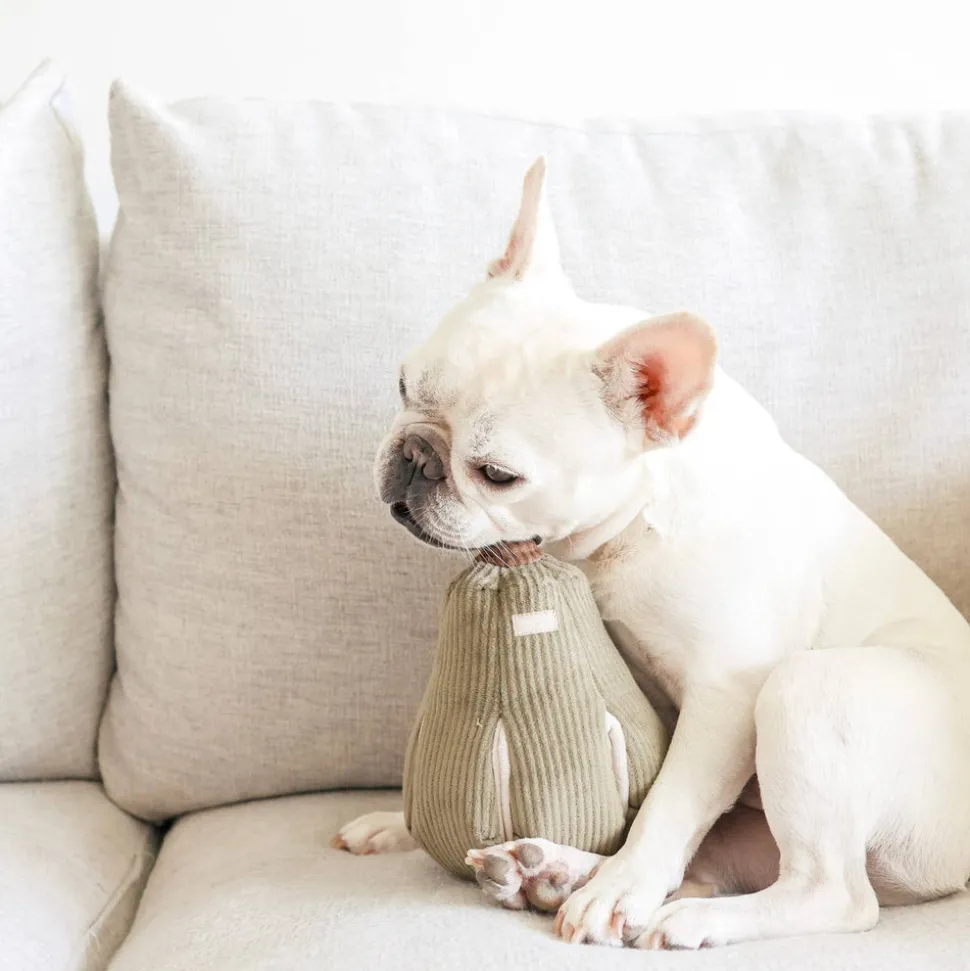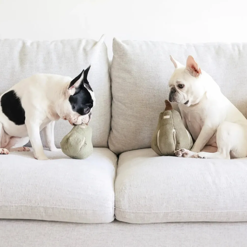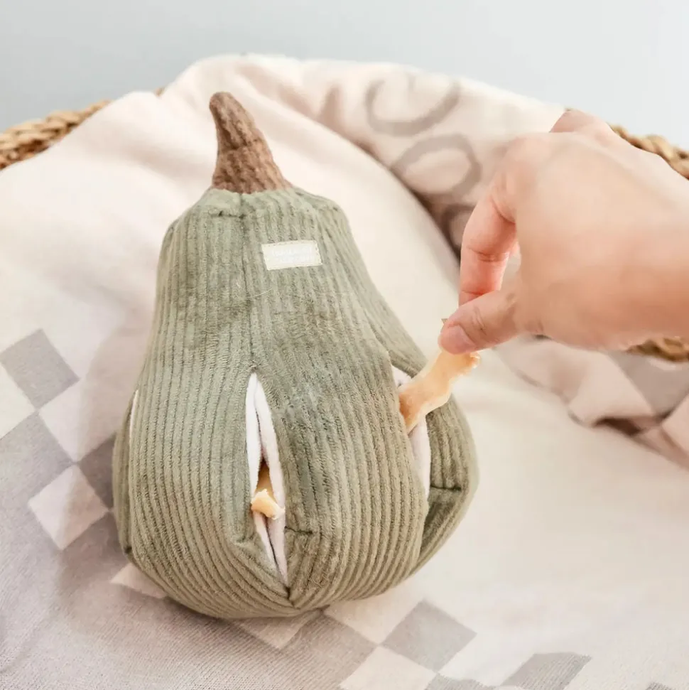 The BUTTERNUT enrichment toy features 6 treat pockets that open sideways as the snoot make its way in! The small size also has a super squeaker inside, whereas the large has small squeakers, making it extra fun!