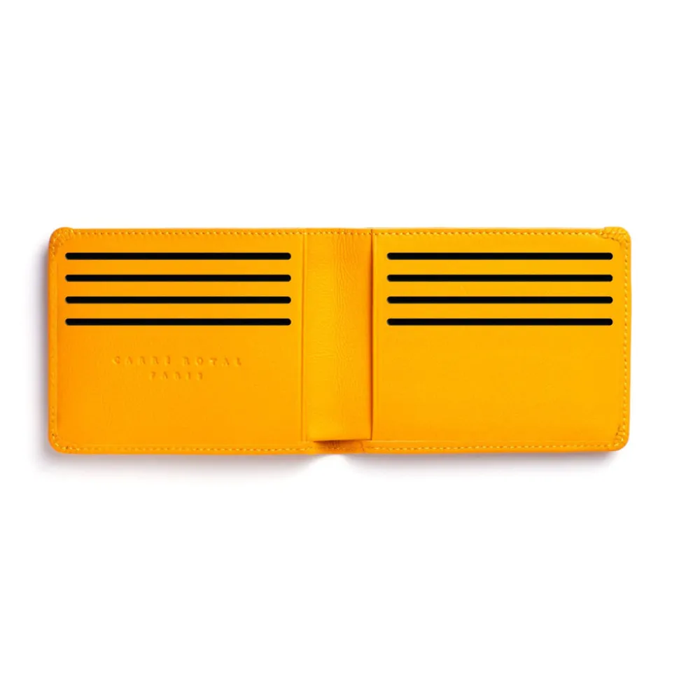 Made of soft calfskin leather that will age beautifully. Features 8 card slots, a bill compartment, and 2 multipurpose pockets. Elastic closure provides a touch of contrast color and keeps your wallet firmly closed.