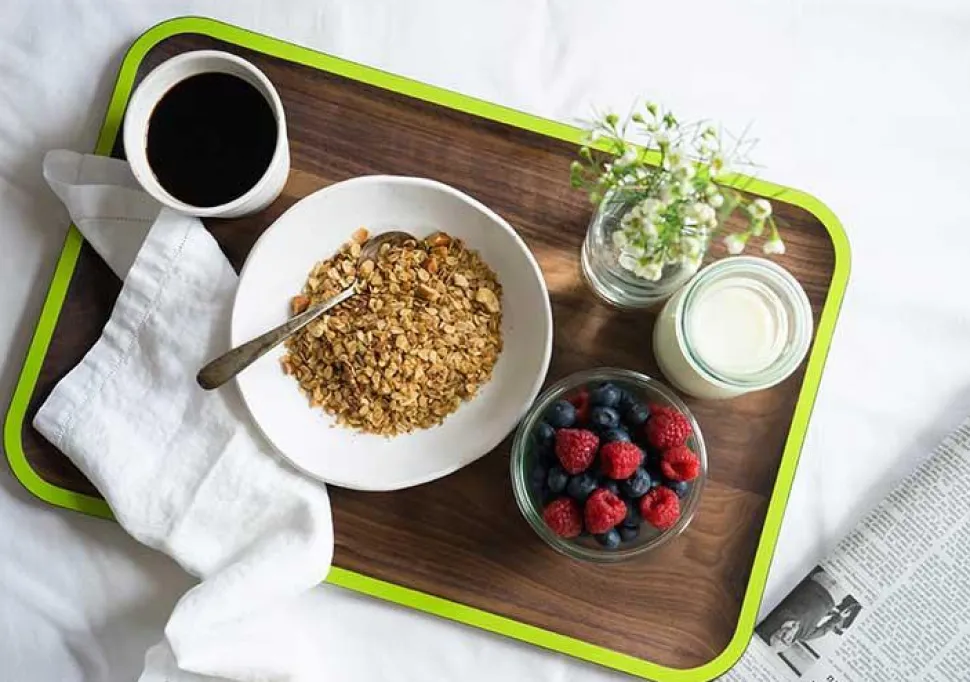 Handsome walnut trays for breakfasts in bed, a modern tea or coffee service, or for when you just want to plop down on your couch and watch some tv with a meal. Generously sized.