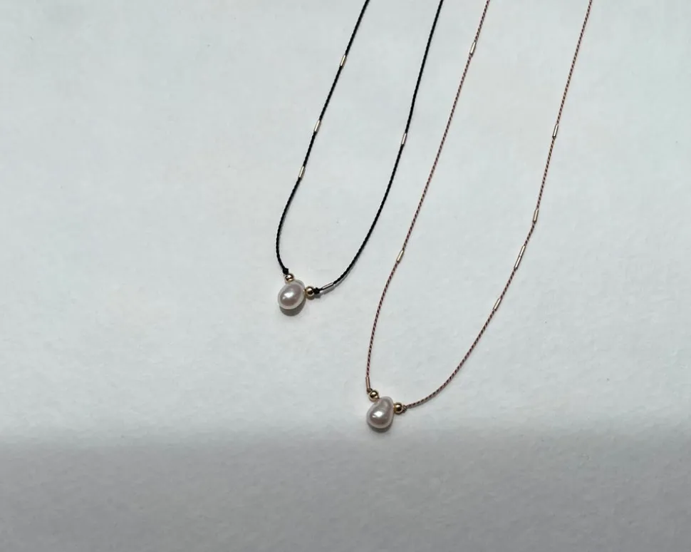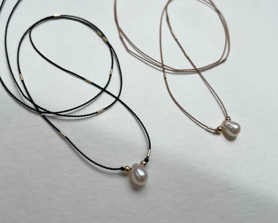 16″ Silk cord, 14k gold filled, freshwater pearl