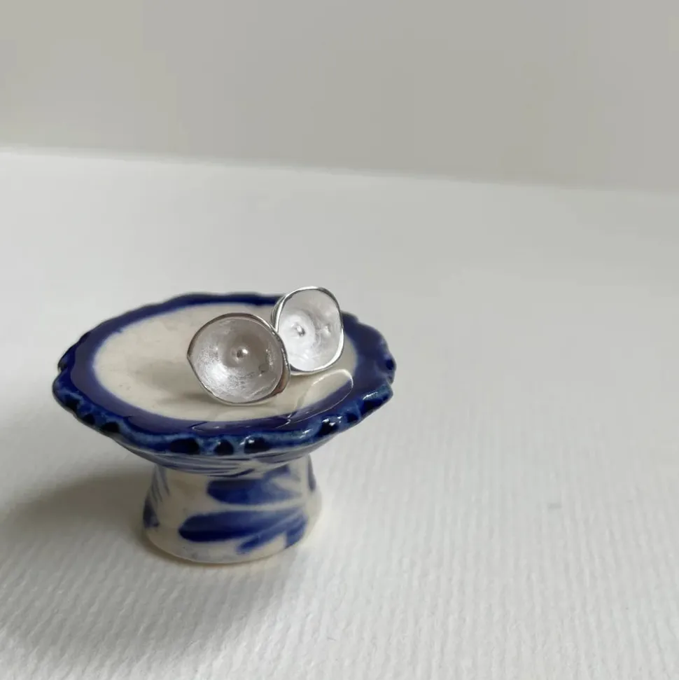 Inspired by the tropical coral reefs along the shore of Koh Tao in the Gulf of Thailand, these earrings invite a closer look. Each earring is an abstracted form of individual coral polyps, with a sandblasted interior to enhance the texture and shine at the rim of each cup.
