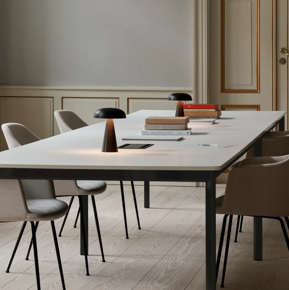 Match lighting to mood with Como SC53, a portable table lamp designed by Space Copenhagen for &Tradition. Crafted from anodized aluminium, Como’s sturdy base tapers up towards a softy curved, mushroom-shaped shade. This battery-powered lamp can operate for eleven hours at the highest setting and is easily recharged with a magnetic USB cable or a charging tray. Dimmable.