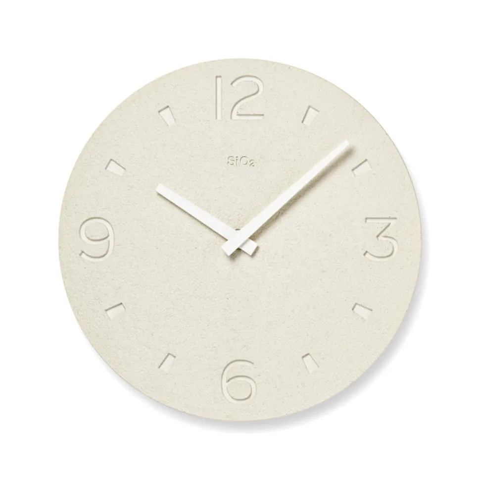 The new Earth PLA Clock is both delicate and rustic, with a finely textured surface produced by a traditional Japanese plastering technique 一 Kakiotoshi (掻き落とし).