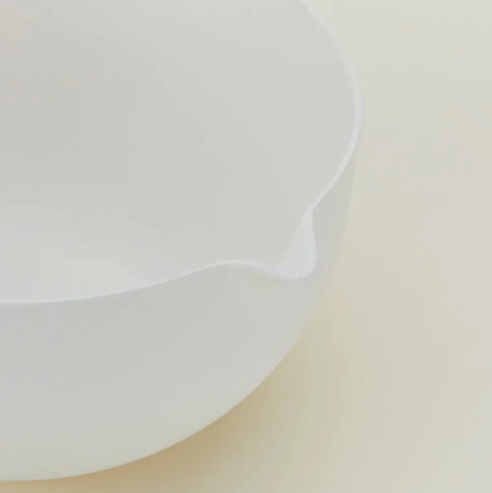 Nested mixing bowls made with sustainable bamboo fiber. Pleasingly rounded, features a pour spout.