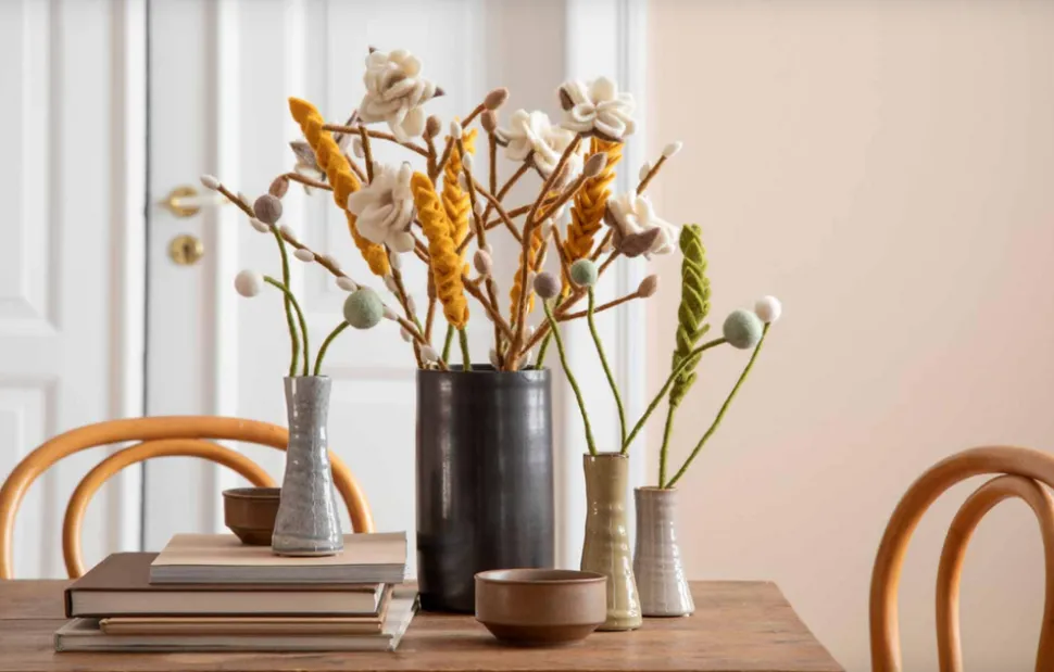 Gry & Sif felt greenery are designed in Denmark and handmade by skilled women in Nepal from 100% New Zealand wool. They are a great addition or alternative to dried flower arrangements, and won’t shed or break. As a bonus, they are bendable and can be shaped into your desired form.