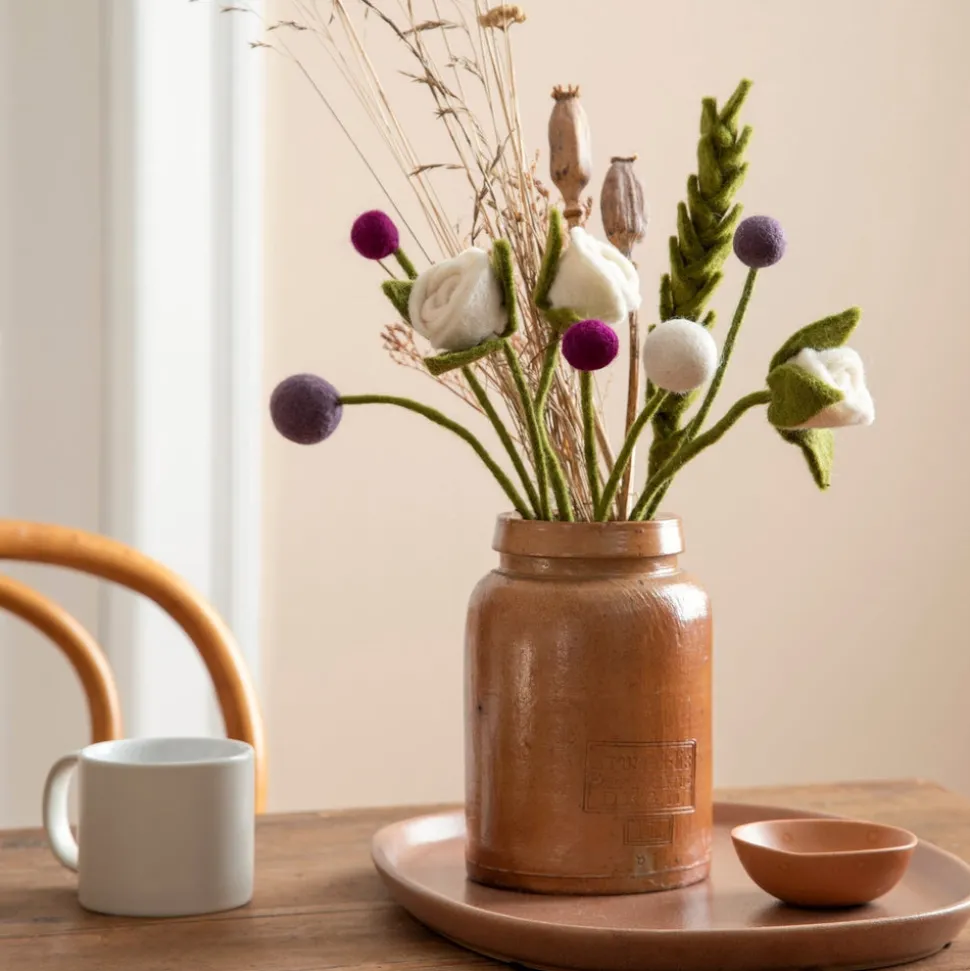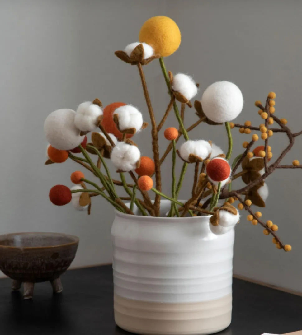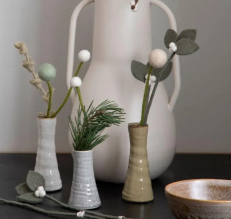 Gry & Sif felt “flowers” are designed in Denmark and handmade by skilled women in Nepal from 100% New Zealand wool. Their felt greenery are a great addition or alternative to dried flower arrangements. These abstracted flowers, which call to mind Craspedia Billy Balls, are a great way to add some cozy, sustainable decor to your home, especially during the holidays.