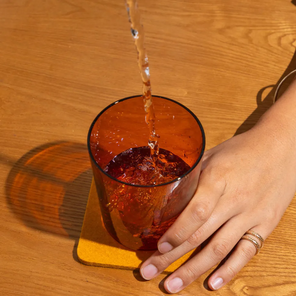 So whether it’s ice cold lemonade, the perfect Manhattan, hot mint tea or that first cup of coffee, this is the perfect glass to pair with their perfect felt coasters.