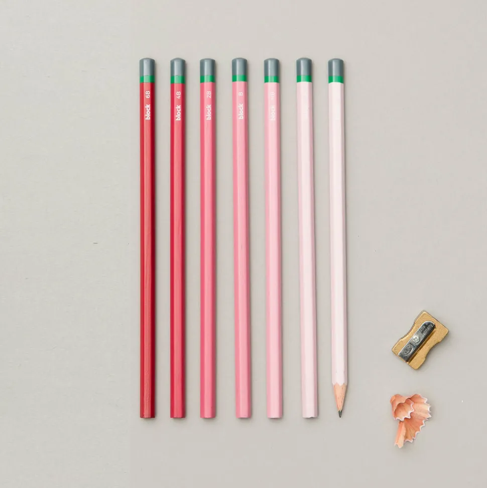 Block Design’s lead designer conceived of these pencils during a weekly life drawing class. “Having had to search through my traditional grey set each time I needed a 6B in place of a HB or 2H, it occurred to me there must be an easier way to differentiate the pencils. The constant scramble for the required pencil slowed down my sketching, interrupting the creative flow.”