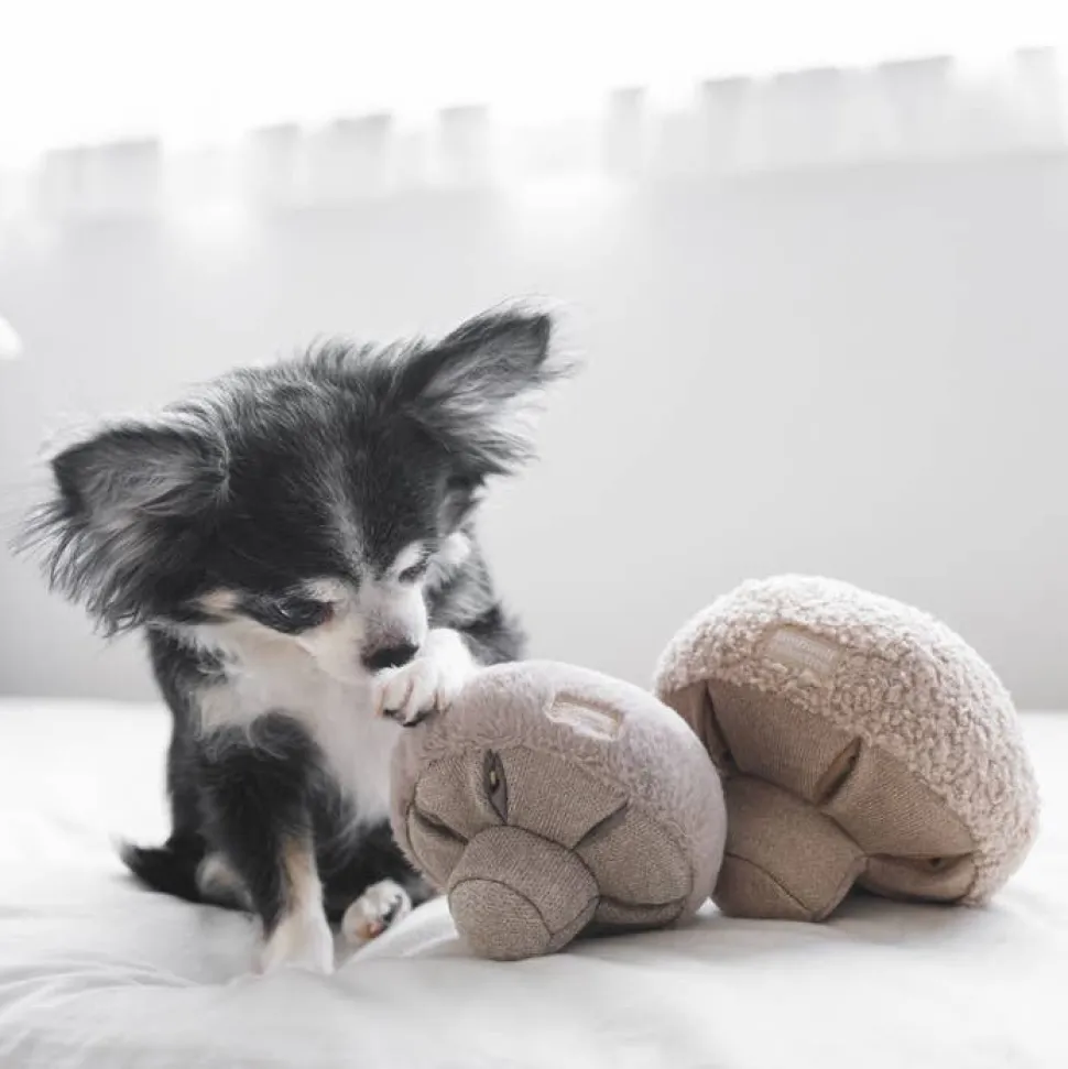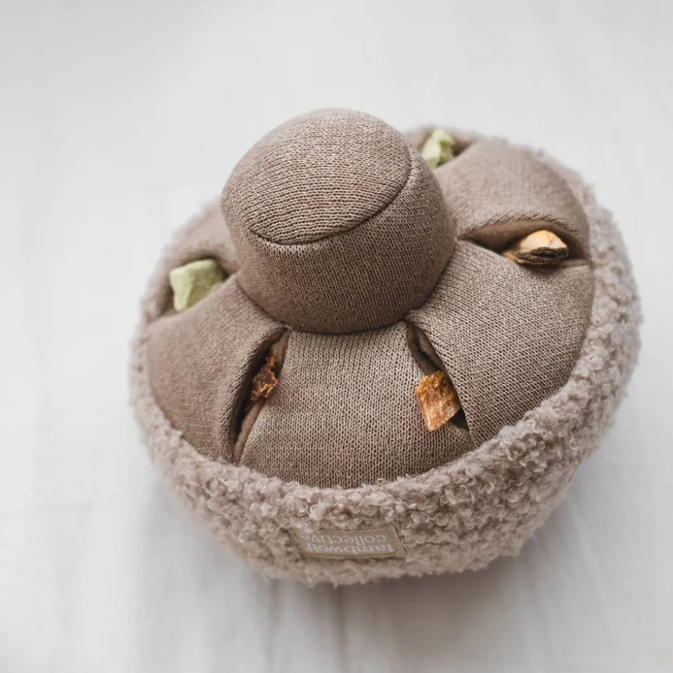 GUU is a button mushroom where the gills are little pockets for hiding rewards. The round, unstable cap adds to the challenge of sniffing and nosing out the treats. GUU is perfect for playing fetch with too!