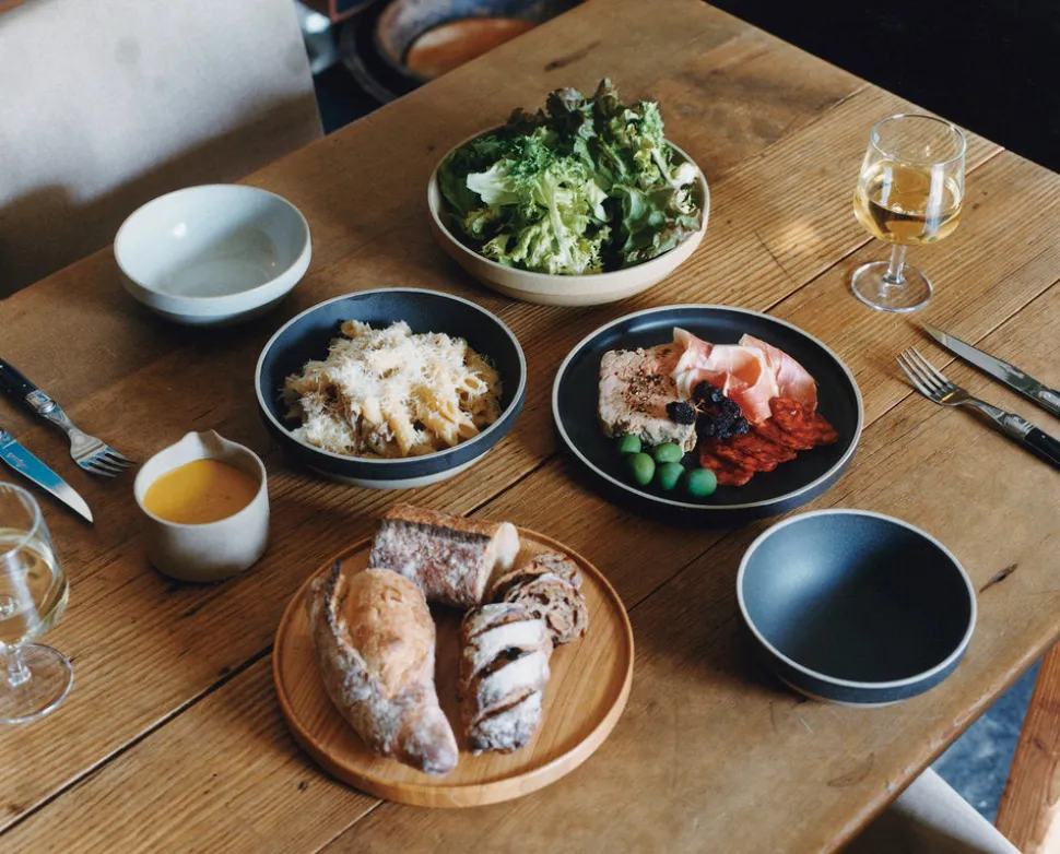 Made from a mixture of porcelain and clay, Hasami Porcelain has a tactile feel, modern form, and roots in Japan’s pottery tradition. These traditional bowls have rounded bottoms. The ‘natural’ line is left unglazed and fired at temperatures high enough to create a seal.