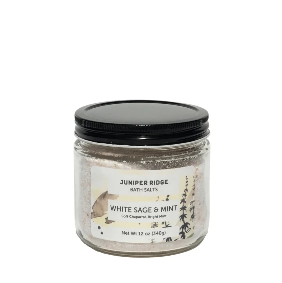 Experience the enchanting allure of the desert at dusk with Juniper Ridge’s White Sage & Mint Bath Salts. Immerse yourself in the soothing embrace of aromatic resins and warm earth, as cool mint notes tease their way into the air.