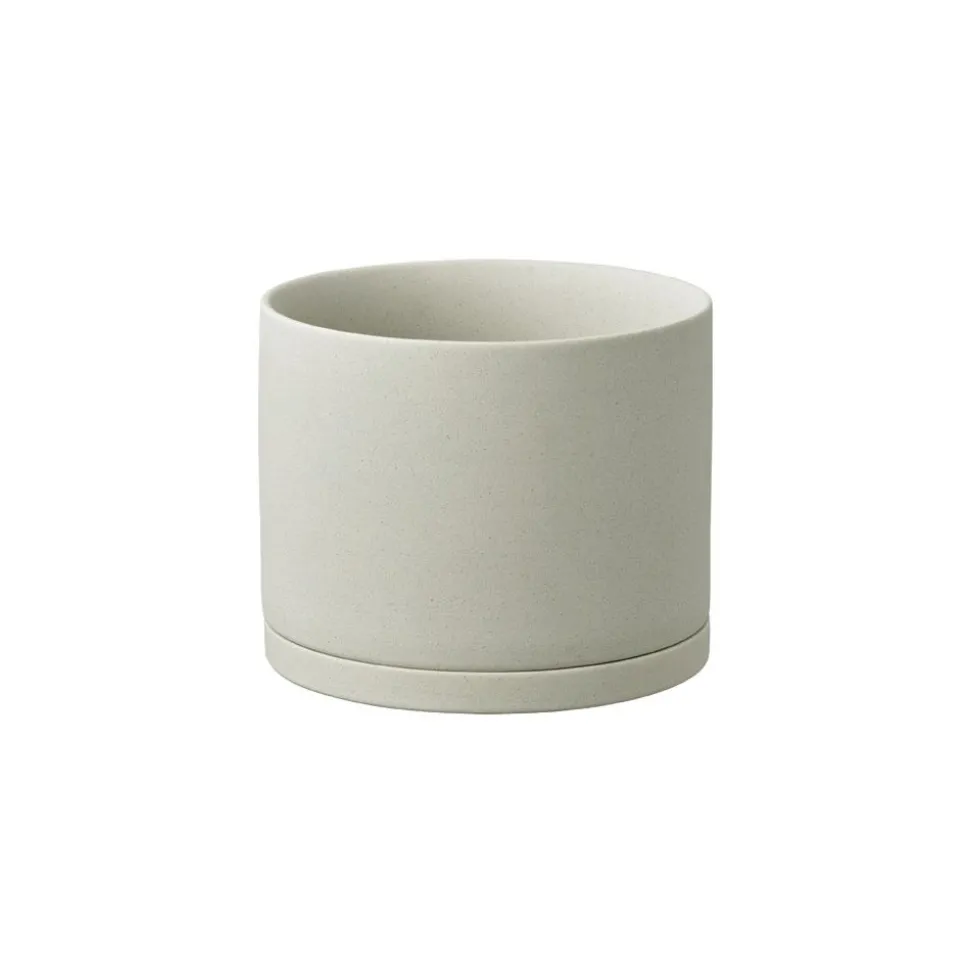 The clean silhouette and matte glaze of this plant pot is made for minimalist spaces. A drainage hole lets excess water run out to keep away root rot. The matching saucer catches runoff and protects your floors, so it may be used indoors as well.
