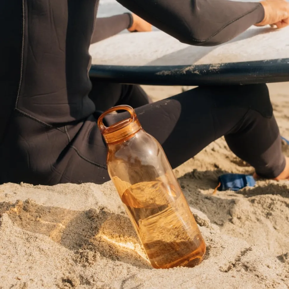 A lightweight and compact water bottle that’s easy to carry around. The beautiful form, transparency, and clear amber color of the bottle is accentuated when the bottle is filled with water.