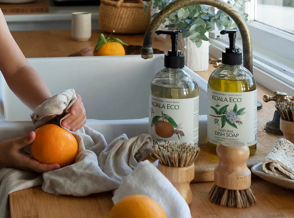Koala Eco’s Lemon Myrtle & Mandarin Dish Soap cuts through grease and food residue leaving your dishes, pots and pans sparkling clean. This biodegradable and eco-friendly plant-based formula effortlessly cleans without the need for toxic chemicals.