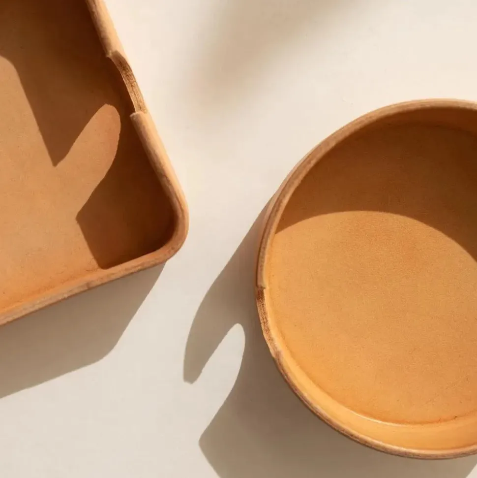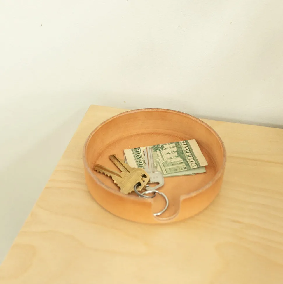 Sculpted vachetta leather creates a timeless catch-all that is perfect for home or office. Designed to fit Graf Lantz’s Bierfilzl Coasters and available in round or square shape, this organizational wonder also moonlights as a multi-talented organizer perfect for jewelry, small office supplies, and other diminutive treasures.