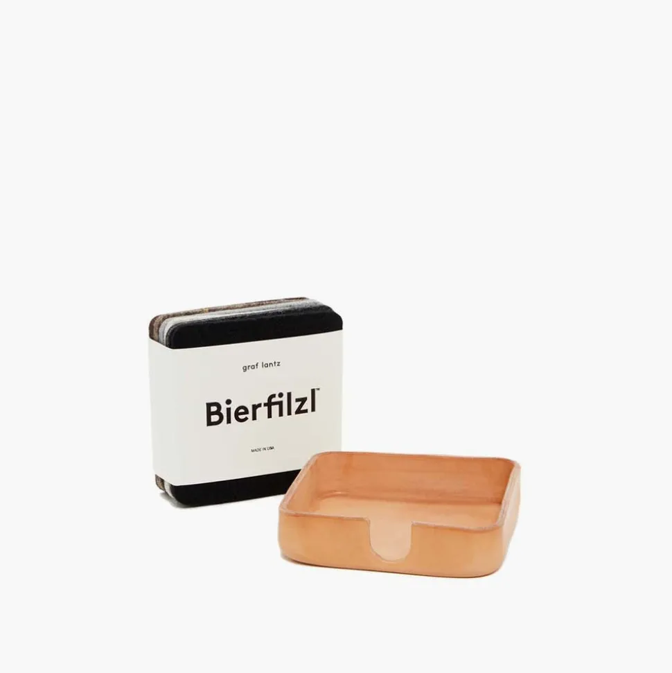 Sculpted vachetta leather creates a timeless catch-all that is perfect for home or office. Designed to fit Graf Lantz’s Bierfilzl Coasters and available in round or square shape, this organizational wonder also moonlights as a multi-talented organizer perfect for jewelry, small office supplies, and other diminutive treasures.