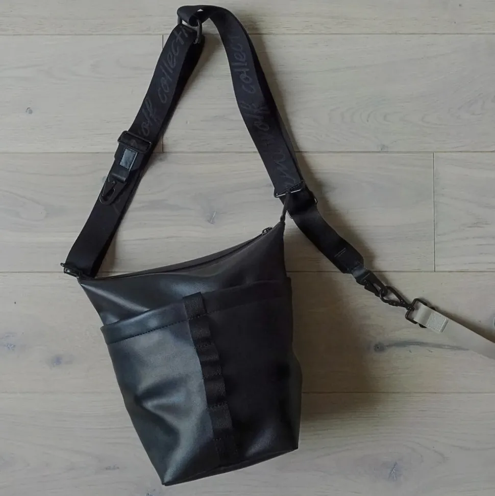 The Lambwolf Collective Bucket Bag is made out of vegan leather and designed to be dog walk friendly while still stylishly urban. From potty walks to city dates, trip out of town or adventurous walks, this bucket bag is meant to be worn in different ways to adjust to your style of the day. The bag can be worn as a shoulder/crossbody bag or as a backpack via the cleverly designed shoulder strap, which can be separated and hooked to each side of the bag.
