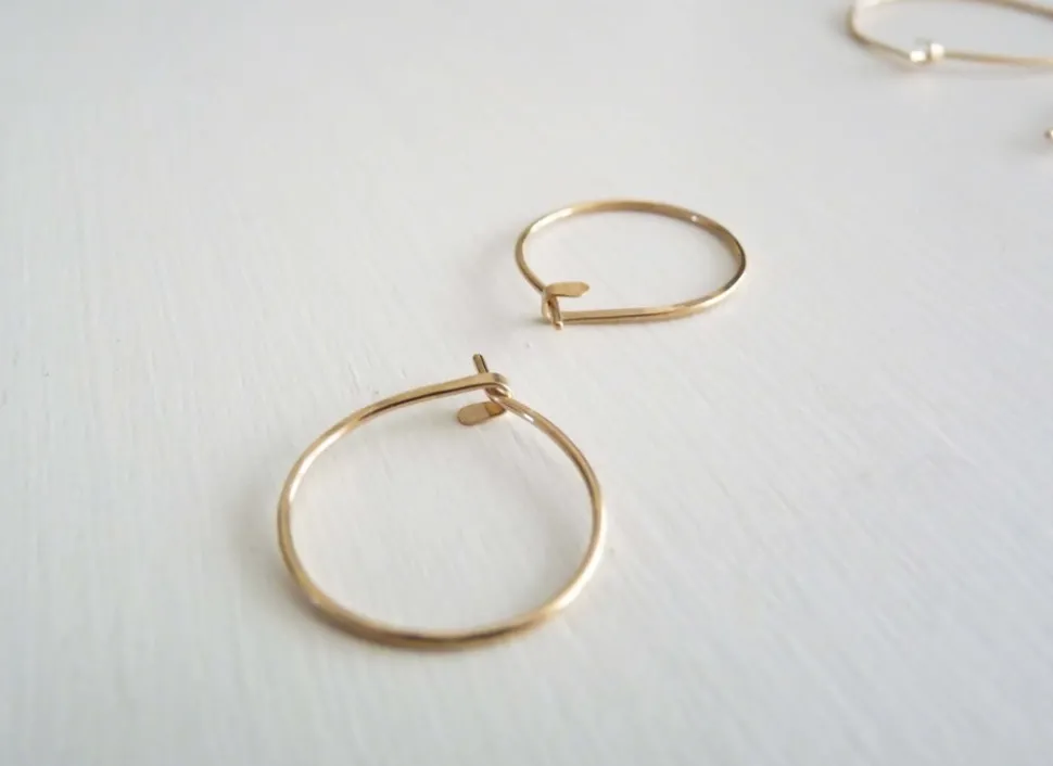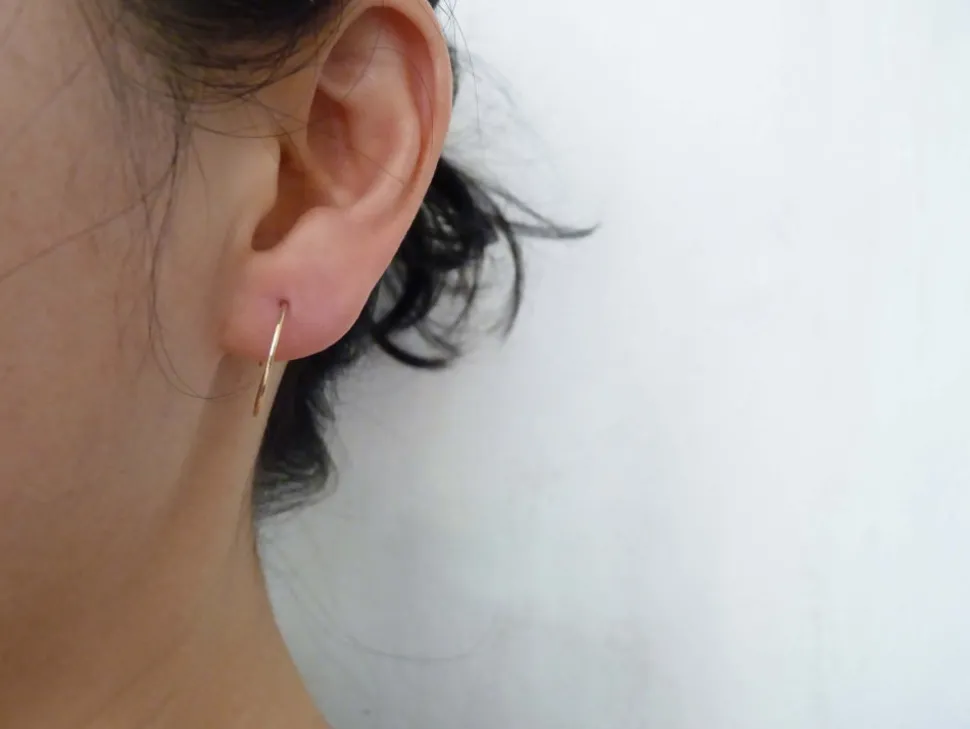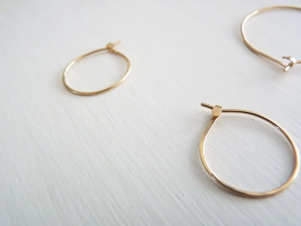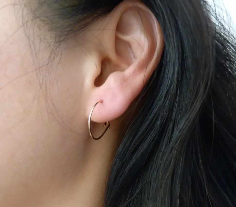 Back to basic but never boring. Small hoops that are cute as a button with the Cinq signature hammered surface. Beauty goes hand in hand with function at the elegant and simple latch closure. Slide the latch behind the ear for a streamlined hoop, or turn the closure forward as a focal point. These will be your beloved chameleon.
