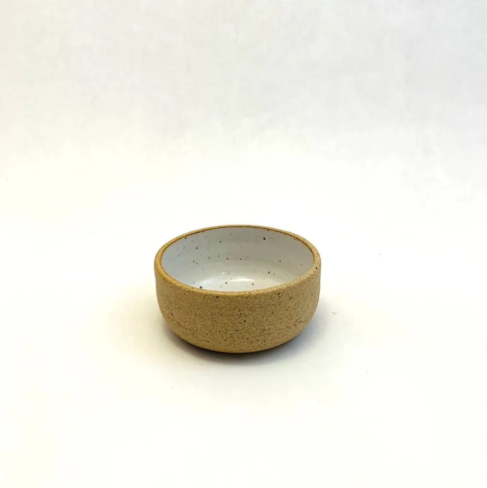 Perfectly sized for keeping salt on the table, serving olives and nuts, or for mise en place in the kitchen. This sturdy little bowl is reassuringly solid feeling and ready to be at your service. Handmade on a pottery wheel, natural exterior and glazed interior.