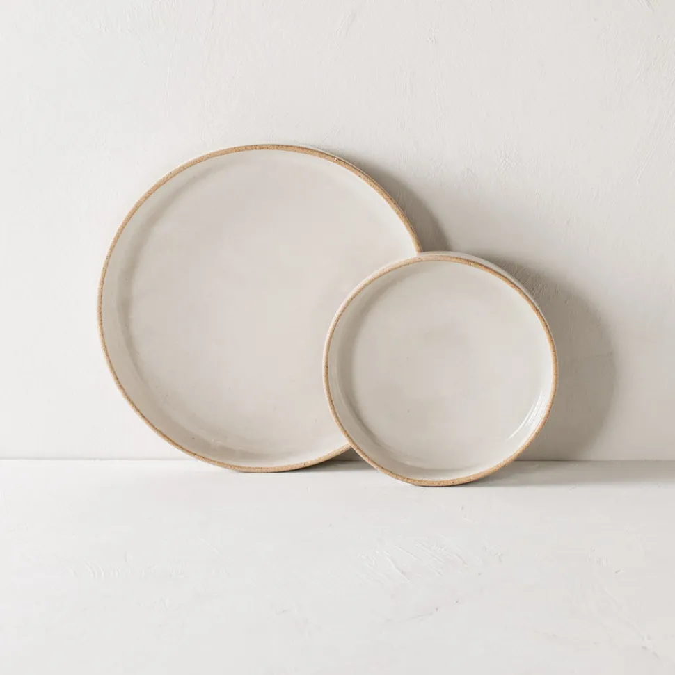 Minimal Dishes are an extension of the Minimal Dinnerware Collection. This design is available in three sizes: dinner, salad, and side. Each piece is handmade with sand stoneware and finished with an ivory glaze, with an exposed rim highlighting the warmth of the sand clay.