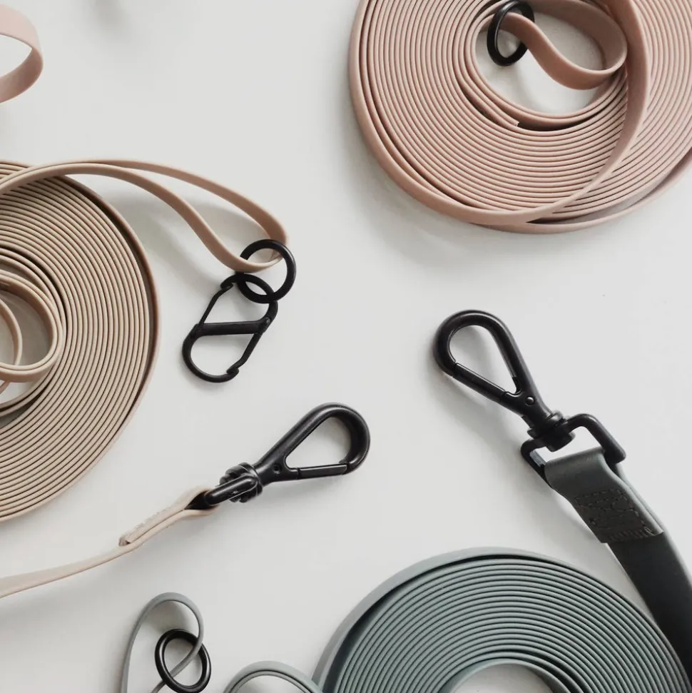 The NOMAD ultra light long lead is perfect for giving your dogs more freedom on hikes and walks while keeping them safe, or for training at a distance. Made with a custom ⅜” or 1cm wide soft vinyl coated webbing material that is extremely lightweight, it is also durable, with a layer of tightly woven webbing inside. A short tab is added to the front for a good grip + easy control. The entire long line can be rolled into a ball that fits in a palm, so it can fit in your jacket pocket or a small fanny pack.