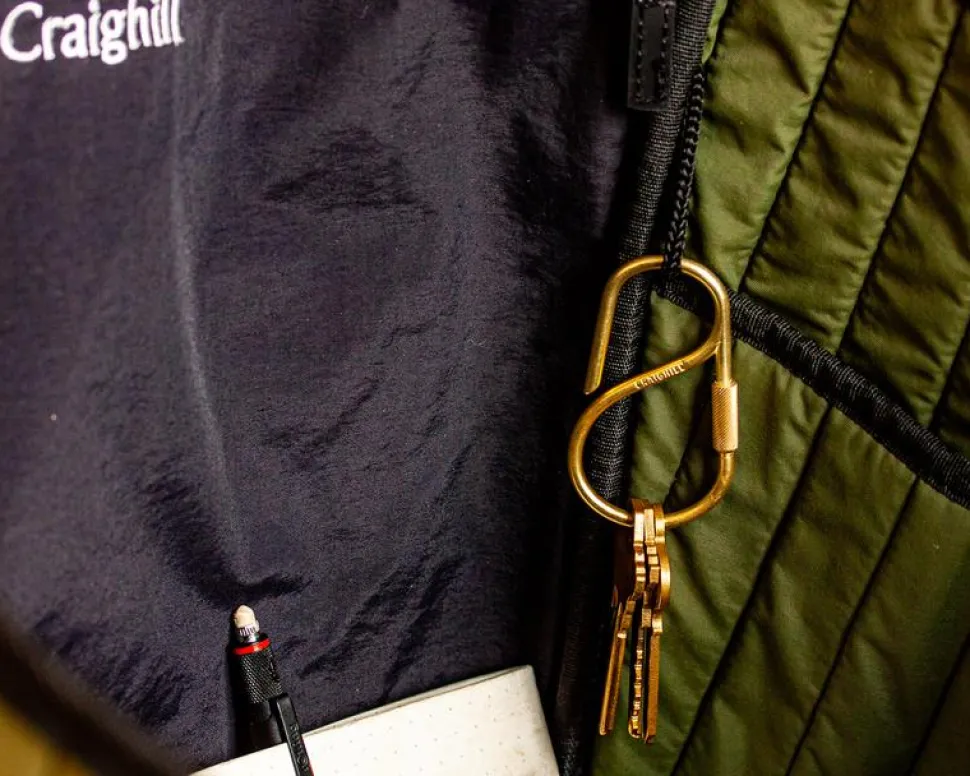 An elevated descendent of the traditional carabiner, reimagined in brass.