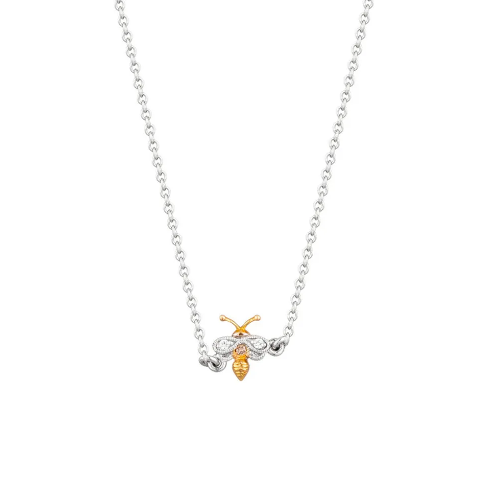 Inspired by the minute perfection of North America’s smallest bee species and namesake, the Perdita Minima Necklace has a finely detailed bee in 18K and 14K gold with natural diamonds.