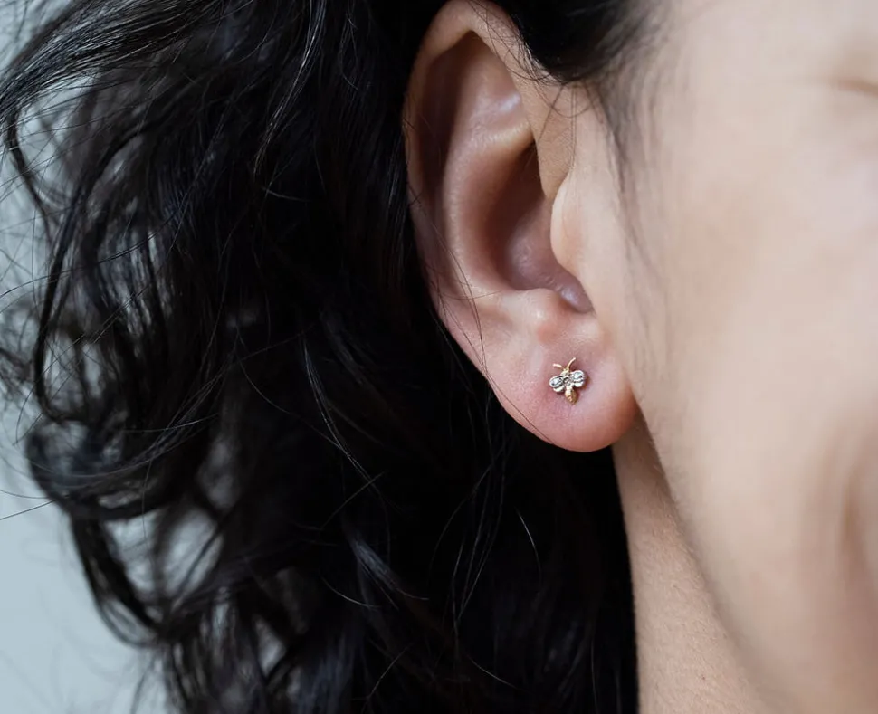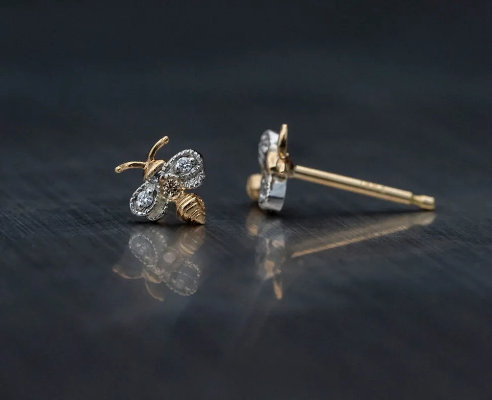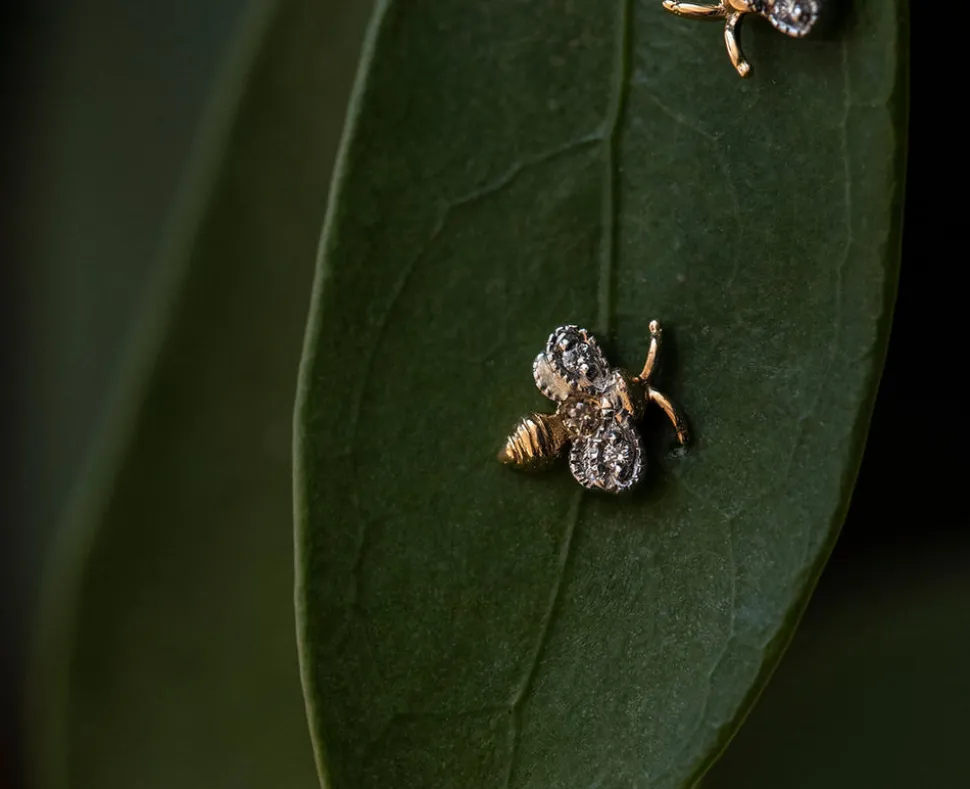 These sweet studs are part of the Beekeeper Collection, inspired by the vital pollinator and the sacred geometry of their hives. Bees are vital to the food supply yet their populations are in decline and endangered. Arte Vitta donates a portion of sales from this collection to The Bee Conservancy, which works to protect bee species and safeguard their environment.