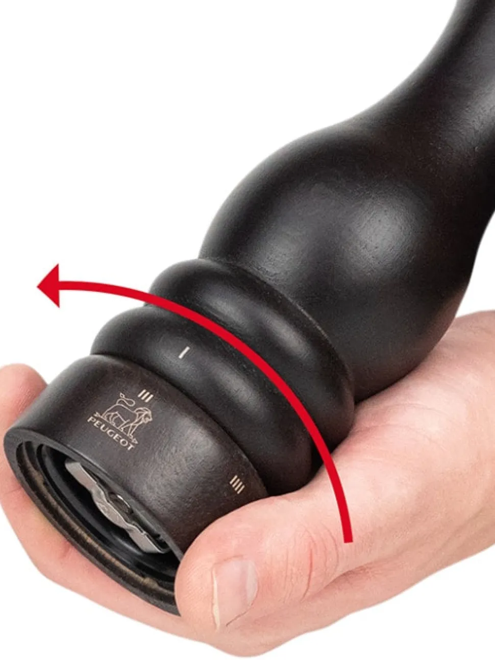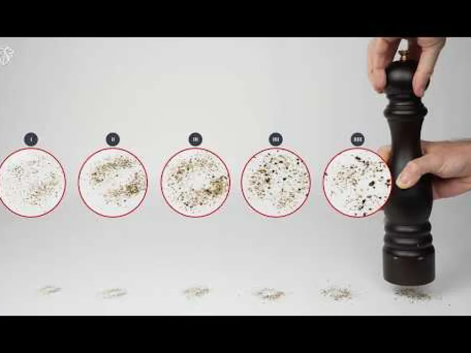 This manual Paris pepper mill has Peugeot’s ingenious grinding adjustment system called u’Select, with six grind presets clearly marked on the base: 1 for the finest grind and 6 for medium to coarse grind. Simply turn the base of the grinder to select the desired grind size for the exact flavor experience you want to create.