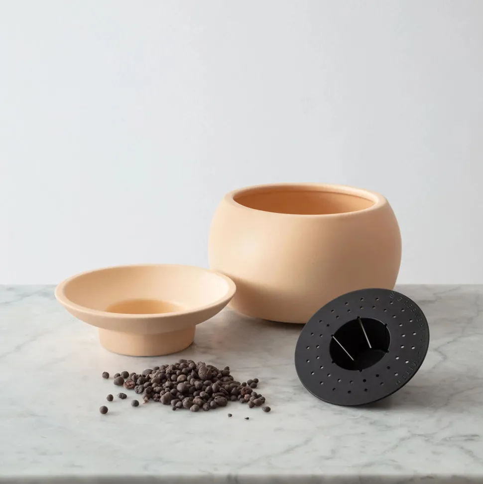 Made from the highest quality ceramic, this footed planter also contains their patented sub-irrigation system that allows plants to drink from the roots, just as nature intended. Never over-water your houseplants again!