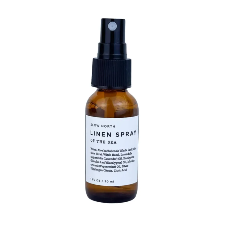 Slip this linen spray into a pocket or bag for aromatherapy on the go. Slow North’s custom blend of eucalyptus, lavender, and peppermint essential oils is designed to soothe and uplift, with mint notes and a sweet, fresh undertone. Spritz on bed linens as part of a soothing nightly routine, or above your head for a mid-day pick-me-up and deep breathing break.