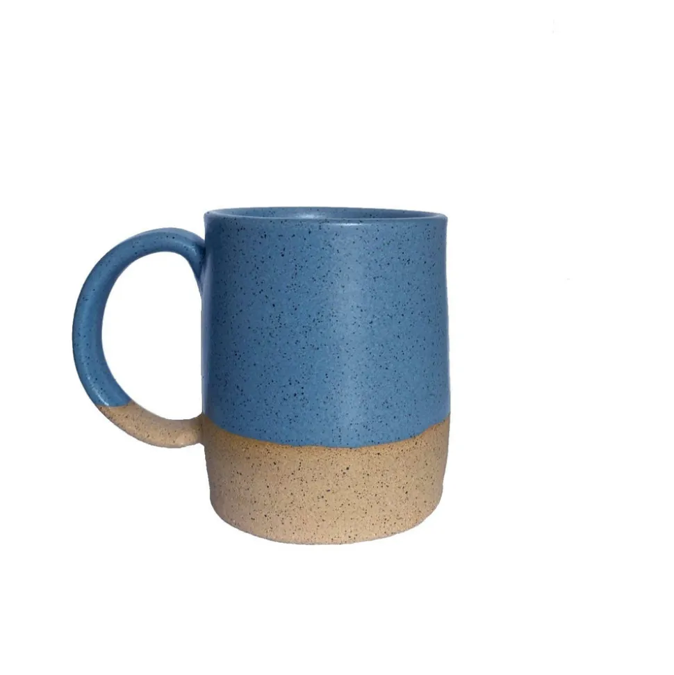 Unglazed clay banded with a matte-finish glaze provides a pleasing study in contrasts of texture and color. These sturdy mugs are both contemporary and rustic, the perfect size to wrap your hands around for a cozy cup of tea or hot chocolate on a crisp morning. Thrown on a wheel by Vermont-based potter Natania Hume, each individual mug has its own character and will have subtle variations in form, color and size, reflecting the handmade nature of the line.