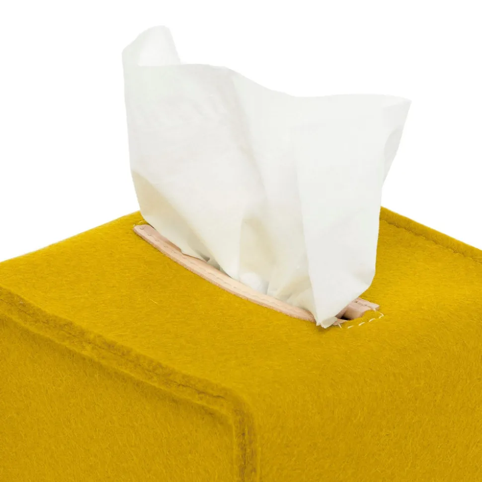 Small Merino Wool Felt Tissue Box Cover, Dijon