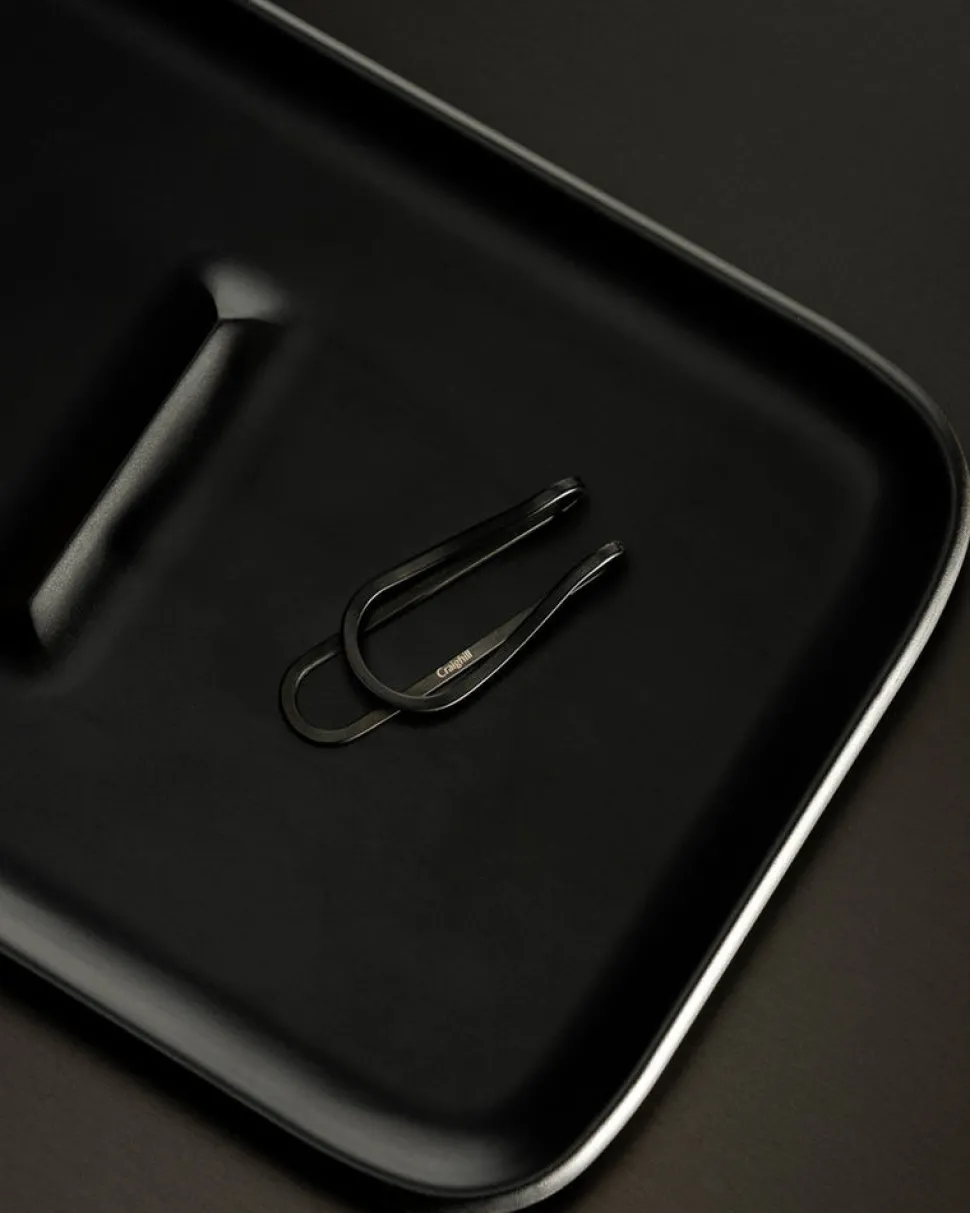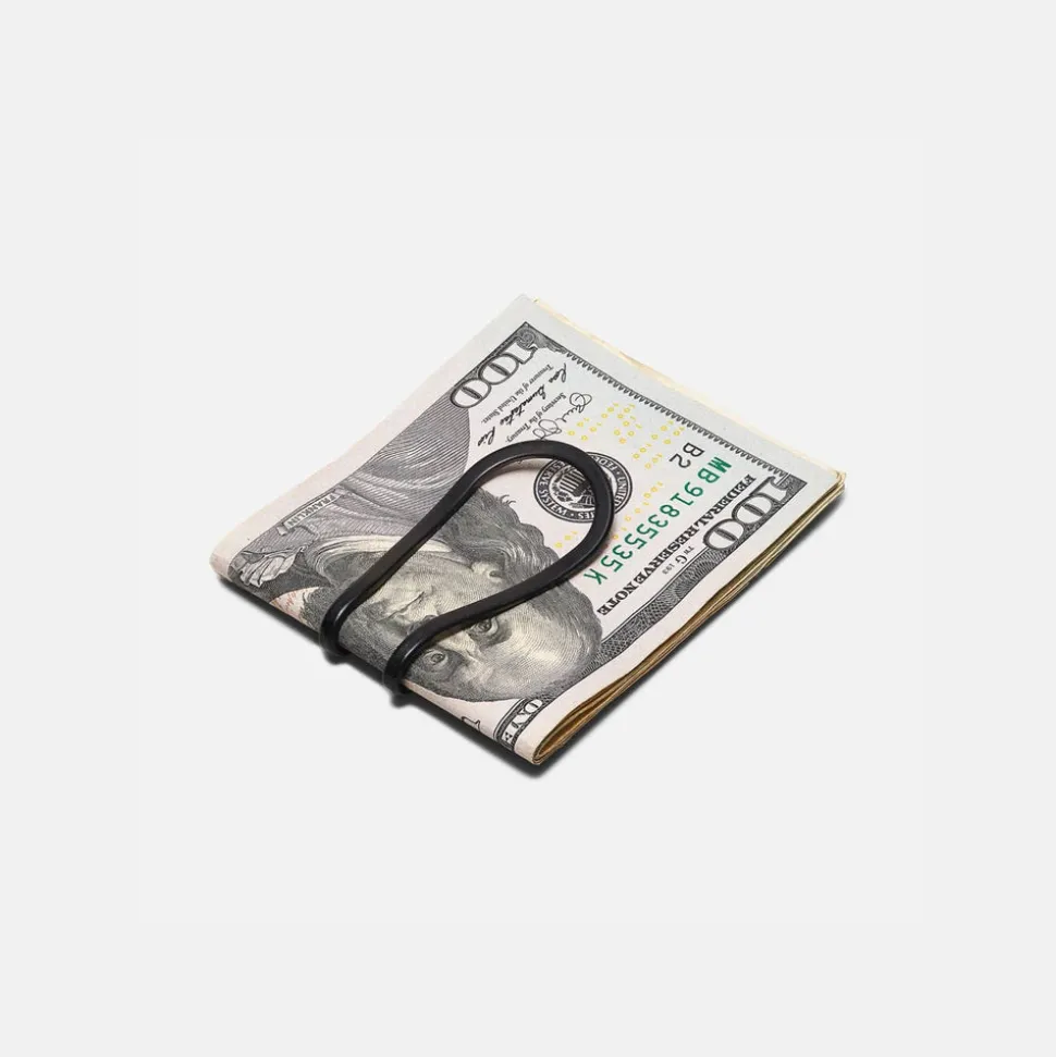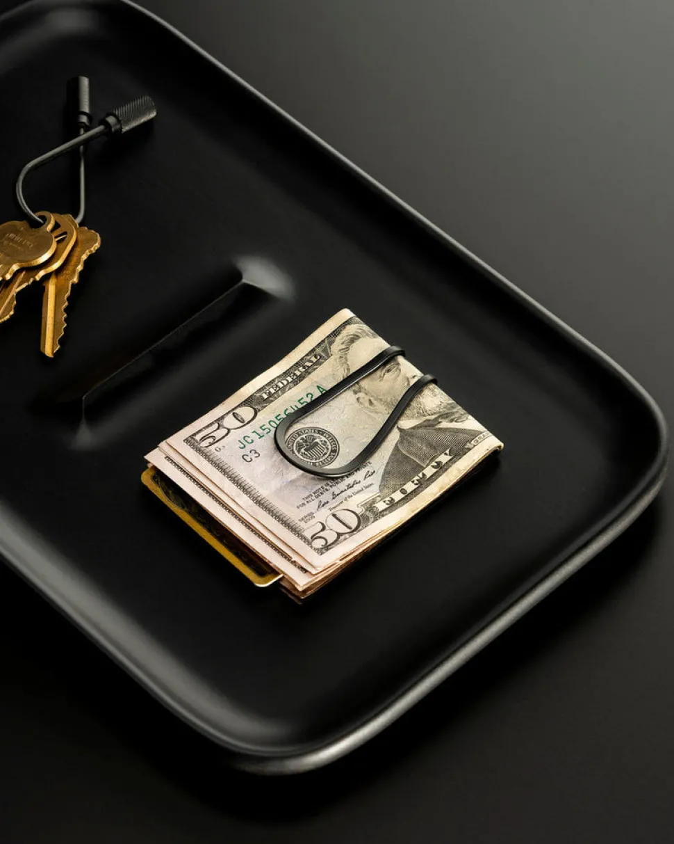 A sleek home for cash and cards, the black Station Money Clip is light, springy, and thoughtfully designed to sit flat in your pocket.