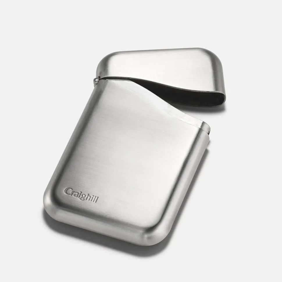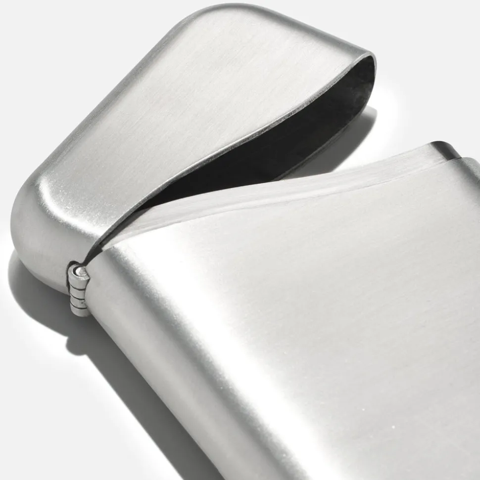 Featuring a hinged lid and a curvilinear cutaway, the Summit Card Case is stamped from stainless steel. Combining durability, style, and functionality, the Summit Card Case is a premium and long-lasting solution for storing, protecting, and presenting whatever you put in it.