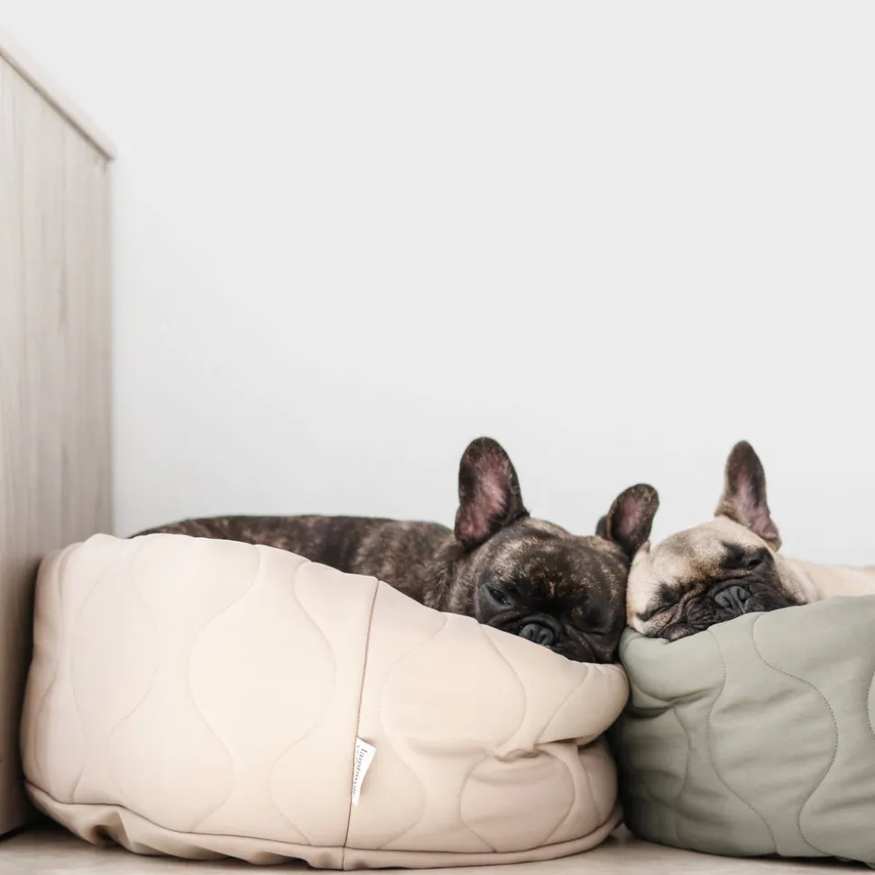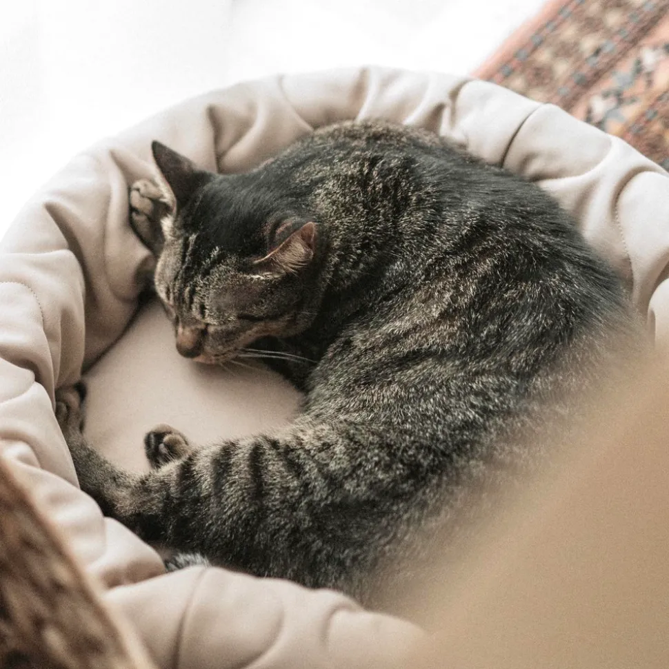 The TAART bed is a cozy and cushioned space for pets who love to sleep in a curled up position. Fully reversible, one side is a fluffy fleece and the other side a cooler nylon, helping with temperature regulation. Roll the sides as far down as your pet likes or leave it up for an extra cozy hideaway.