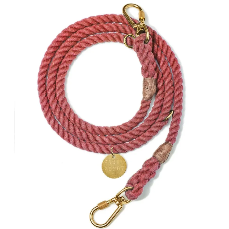 To adjust, hold one of the rings still and twist the rope leash with your free hand. The braids of the rope will separate slightly for the ring to move along. The ring will stay where you leave it. Either end of the leash may be clipped to your dog’s collar.